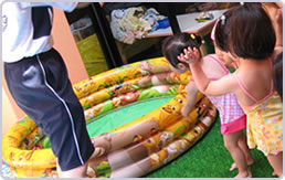 姉妹園である日吉台保育園の室内プールにてレッスンを行います。