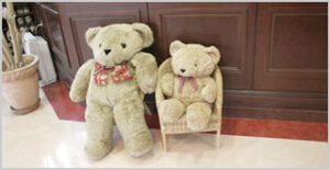 クマのぬいぐるみが皆さんをお出迎え