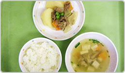 管理栄養士と栄養士が栄養バランスを考えた独自のメニュー作りをしています。おやつも毎日手作りです。子ども達が楽しみにしている食事を安全かつ栄養にこだわり提供しております。